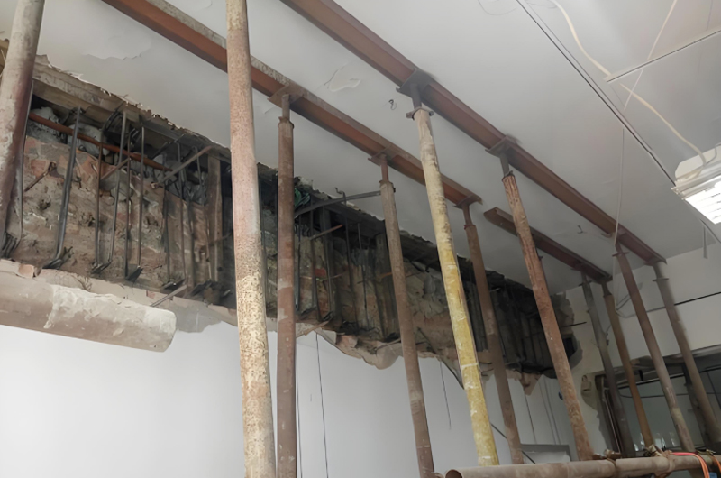 增設支撐體系:在房屋內部合理增設支撐,如鋼支撐、混凝土支撐等,改變結構的受力體系,分擔原結構的荷載,提高房屋的穩定性。比如,在大跨度空間內增設鋼支撐,可有效減小梁的跨度,降低梁的受力。